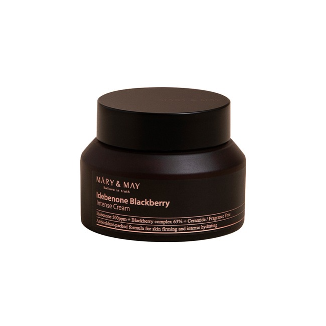 Крем с идебеноном и ежевикой Mary&May Idebenone + Blackberry Complex Intense Cream — средство с невероятно богатым сбалансированным составом, которое станет спасительной соломинкой для кожи, страдающей от недостатка влаги и сухих кожных заломов. Крем не только устранит шелушения и хорошо напитает кожу, но и поможет разгладить возрастные морщинки, защитит кожу от негативного воздействия свободных радикалов, придаст лицу яркость и отдохнувший вид. Крем обладает функцией защиты кожи от потери влаги и поддерживает ее увлажненной в течение 48 часов.