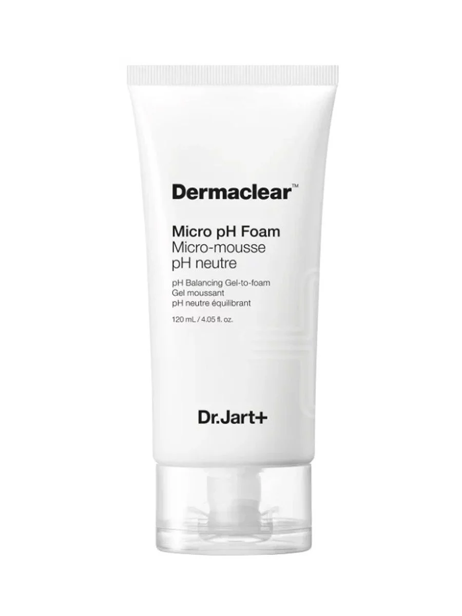 Мягкая гель-пенка Dr.Jart+ Dermaclear Micro pH Foam Micro-Mousse pH Neutre Balancing Gel-to-foam идеально сбалансированное средство с нейтральным уровнем PH 5.5 подходит для самой чувствительной кожи, бережно очищает ее от любых загрязнений, в том числе и от остатков макияжа. Нежно отшелушивает омертвевшие клетки. Восстанавливает кислотно-щелочной баланс. Благодаря богатому комплексу масел средство интенсивно питает кожу.