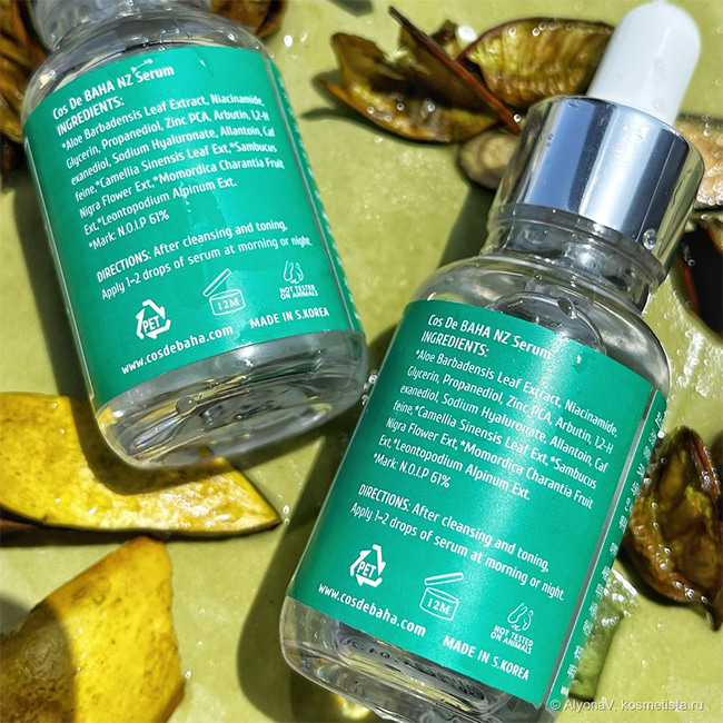 Состав: Aloe Barbadensis Leaf Extract, Niacinamide, Glycerin, Propanediol, Zinc PCA, Arbutin, 1,2-Hexanediol, Sodium Hyaluronate, Allantoin, Caffeine, Camellia Sinensis Leaf Extract, Sambucus Nigra Flower Extract, Momordica Charantia Fruit Extract, Leontopodium Alpinum Extract
